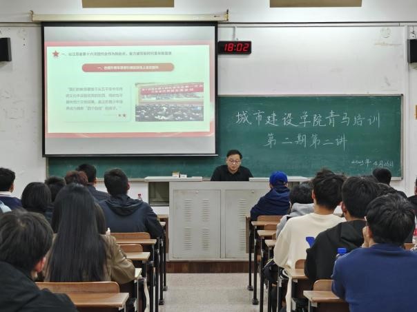 为深入开展学习贯彻习近平新时代中国特色社会主义思想主题教育,进一步加强对青年学生的思想政治引领。色情卡通 于4月26日晚在W1209开展以“深入学习贯彻党的二十大精神––让青春在火热实践中绽放绚丽之花”的专题报告暨“青马工程”培训班第二期第二讲。本次讲座邀请到校团委书记田轶为主讲人,活动由学院团工作负责人程成老师主持,城建青马工程第二期培训班学员、团干部、入团积极分子到场参加讲座。