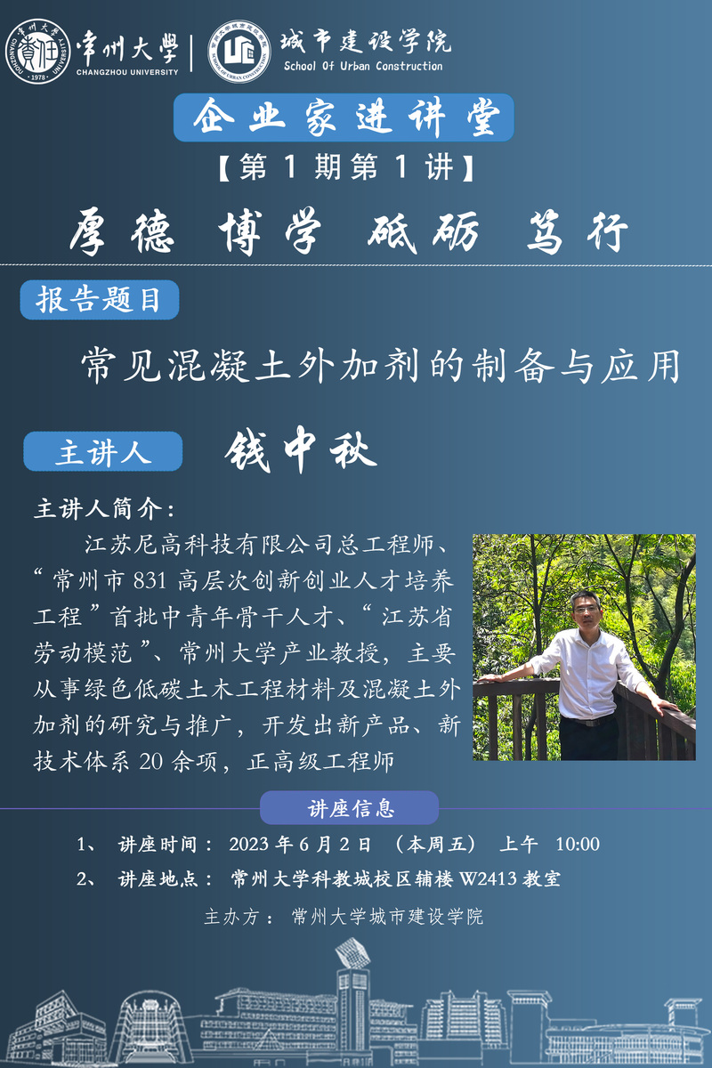 【企业家进讲堂】第1期第1讲:常见混凝土外加剂的制备与应用