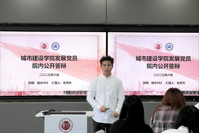 会议伊始,封晓鸣向与会人员介绍了此次答辩会的意义、流程、注意事项以及评议方式。本次公开答辩设置自我展示、群众评议两个环节。12位答辩人从入党动机、在校综合表现、未来发展规划等方面向党组织汇报自己思想、学习、工作等方面的表现。答辩结束后,与会成员根据答辩者的日常表现和现场答辩情况,通过无记名投票的方式对该同志的答辩情况进行评价。