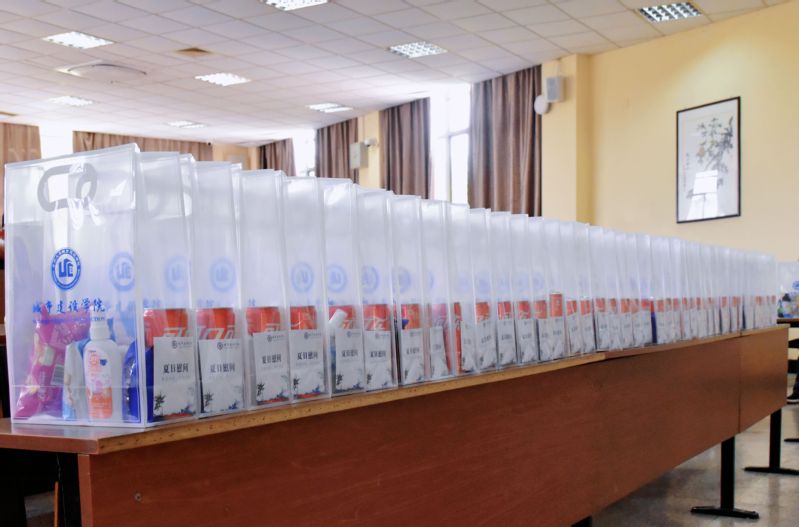 学院领导为全体留校学生送上了精心准备富有美好寓意的慰问礼包,同学们对学院的贴心关怀表示真诚感谢。