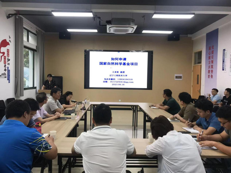 9月18日下午,辽宁工程技术大学王来贵教授应邀来色情卡通 作题为“如何撰写国家自然科学基金项目申请书”的学术报告,学院院长朱平华、副院长许霞及今年欲申报国家自然科学基金的老师参加会议,会议由副院长许霞主持。