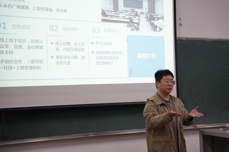 培训之初,王国宇老师以“什么是学生活动,学生活动的意义是什么”为切入口,向学员们介绍了学生活动的定义,他提到,学生活动的意义在于实现学生的德智体美劳全面发展。接着,着重向学员介绍了活动开展的流程,从参与度、呈现度、影响力三个方面展开阐述,特别指出提高自主参与度是活动顺利举行的关键,活动举办过程中的呈现度仍需再细分,通过贴近学生、丰富形式进而提高活动影响力。最后,王国宇指出学生活动策划要分阶段、有层次地引导学生,分析受众群体的特点,在组织活动中争做贴心人,真正做到“我为同学做实事”。