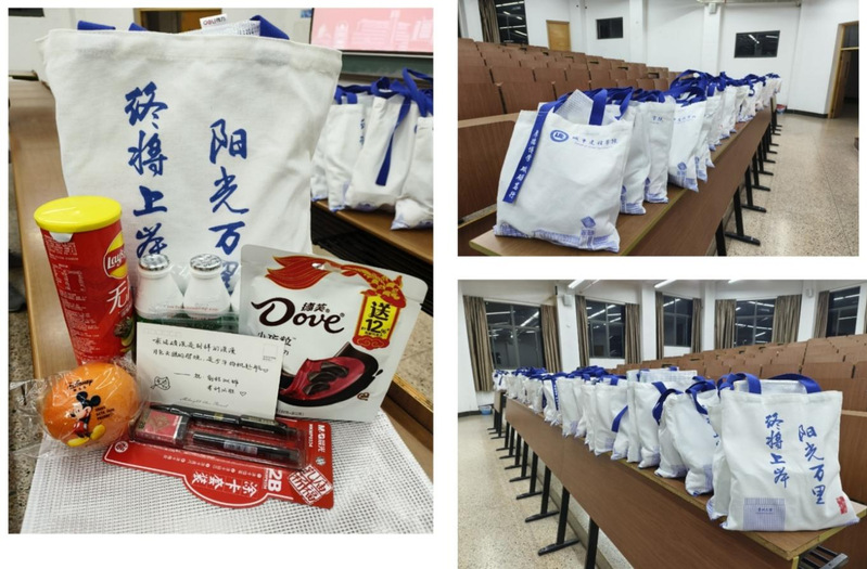 学院为每位考生准备的“考研暖心包”内含考试专用涂卡笔、脐橙、AD钙奶、乐事薯片、巧克力等物品。其中,考试专用图涂卡笔寓意考生金榜题名,考试时下笔如有神;脐橙代表了“脐”开得胜、一战“橙”硕;AD钙奶寓意“钙”世之才,各科全A;乐事薯片寓意乐事降临,非你莫“薯”;巧克力寓意得到福气,考研顺顺利利。“考研暖心包”承载着学院对考生的真挚祝福和殷殷期盼,鼓励大家以昂扬的姿态迎接即将到来的考试,奔赴璀璨研途!