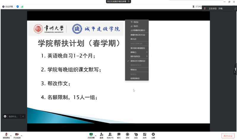 为强化学生英语学习意识,找准学习方法,为大学英语四级考试做好备考准备,1月8日下午,城建E学堂举办线上大学英语四级寒假复习指导讲座。许敏老师主讲,各专业备考学子参加。