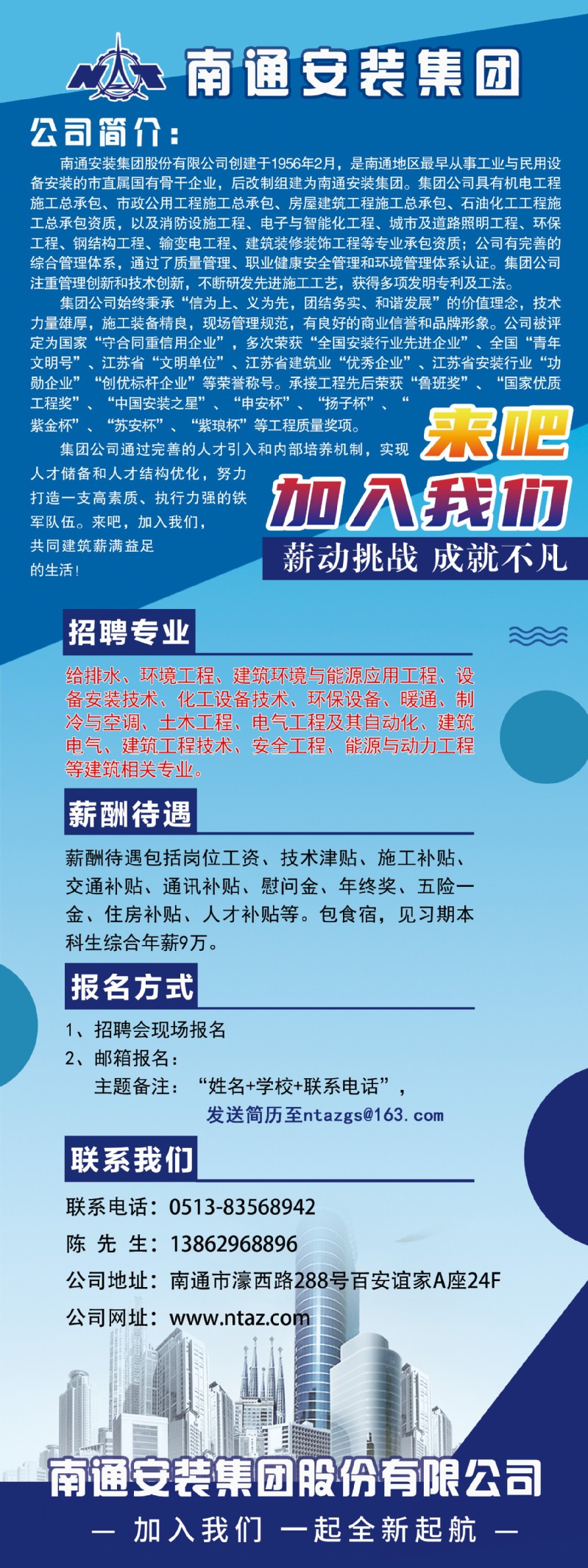 招聘[2024069]南通安装集团股份有限公司2024春季校园招聘