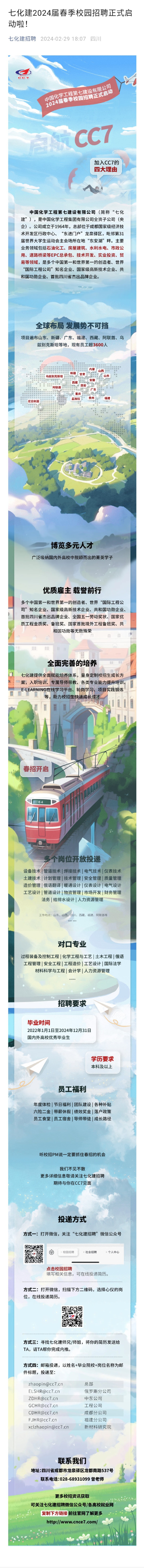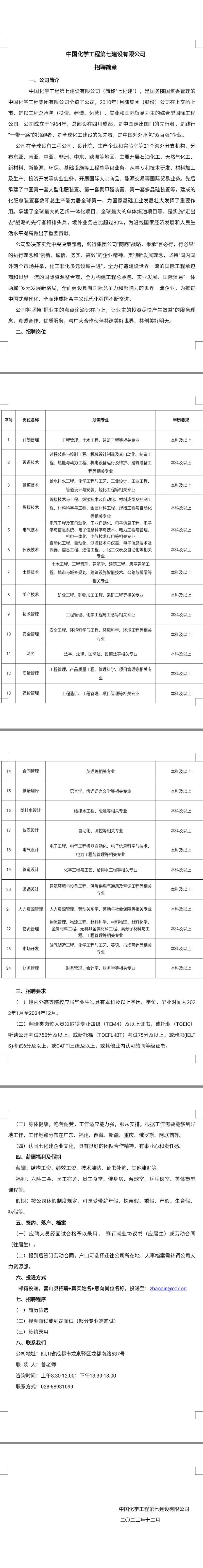 招聘[2024089]中国化学工程第七建设有限公司2024校园招聘