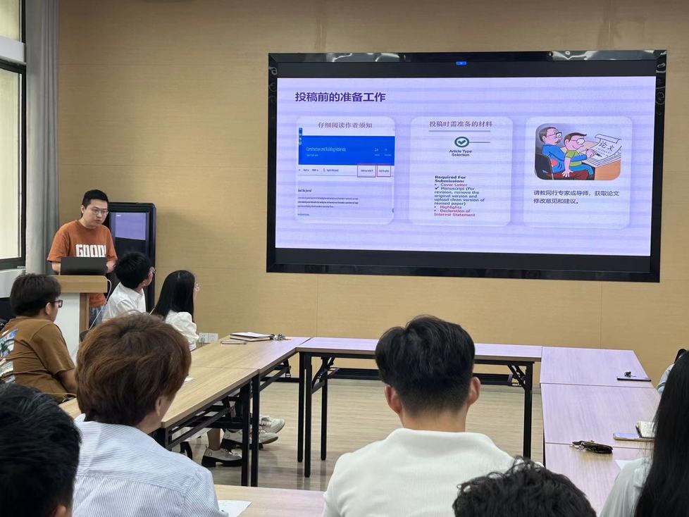 三位主讲人依次上台与大家分享学术科研的宝贵经验,希望对师弟师妹们有所帮助。王华宇从论文选题、试验设计、数据分析等方面详细剖析了论文撰写的精髓与策略,以及分享了如何提高论文学术价值的经验。吴春鸽分享了文献检索和管理的有效方法,并推荐了祥光的实用工具和软件。刘啸林分享了期刊投稿时选择期刊的关键信息和投稿时的注意事项,以及考博择校与备考心态等考博经验。