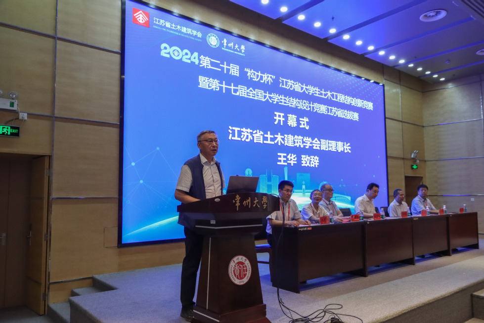 江苏省土木建筑学会副理事长王华对我校承办本次竞赛表达了充分信任和由衷感谢,同时对参赛选手提出几点期望,表示希望各位参赛同学能够在竞赛中团结协作、勇于拼搏、不断进取、追求卓越。