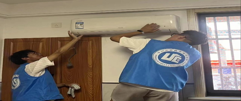 科普宣讲之余,考虑到夏季居民们对空调使用的需求大大提高,实践团结合自身专业特色,提前准备了清洗空调的工具,分为两组前往居民家中,开展免费清洗空调志愿服务。在清洗过程中,建筑环境与能源应用工程专业的学生向居民