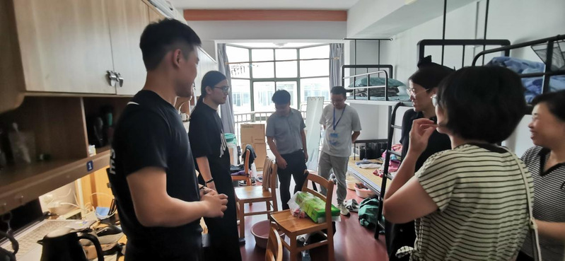 师生连心。迎新工作如火如荼进行之际,学院领导班子亲自深入一线,详细了解迎新工作的进展情况。学院党委书记刘茂灿、院长乔元明、副书记顾坚等领导班子成员在迎新期间多次亲临报到处,并带队走访新生宿舍,不仅关心指导报到的具体工作,还与前来报到的新生进行了亲切的交谈。他们仔细询问了新生们的需求,确保每一位新生都能得到及时的帮助和支持。