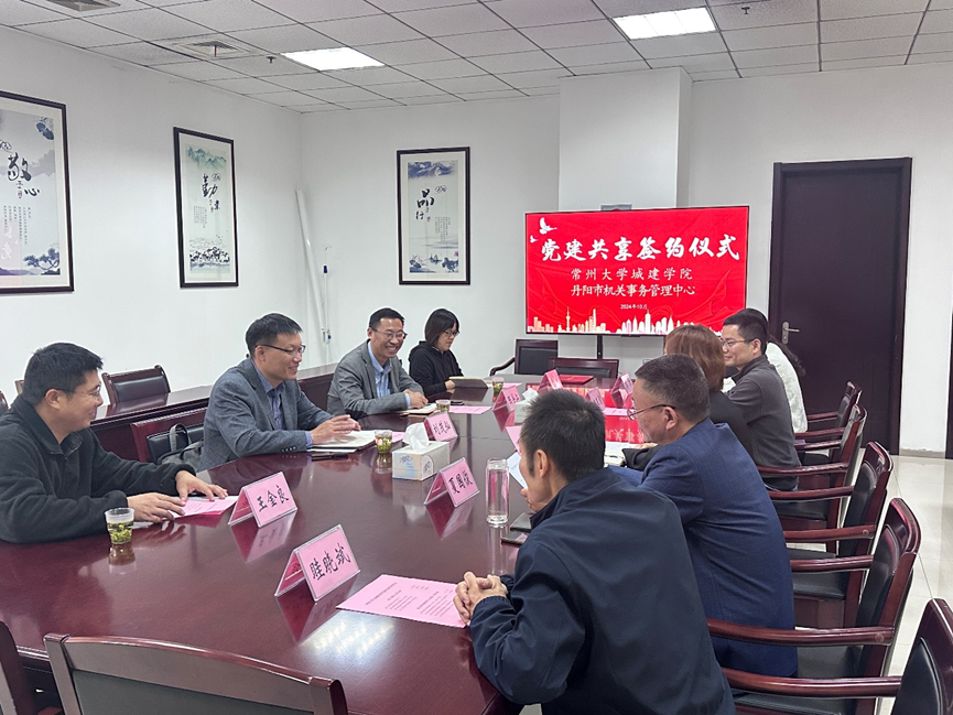 为深入学习贯彻习近平新时代中国特色社会主义思想和党的二十大精神,全面推进党建与业务有机融合,构建“互学互促、优势互补、资源共享、融合发展”的党建工作新格局。10月25日上午,色情卡通 党委与丹阳市机关事务管理中心党总支举行党建结对共建签约仪式。丹阳市机关事务管理中心党组书记韦婕、副书记夏国俊等班子成员、学院党委书记刘茂灿以及建环教工党支部党员代表参加了签约仪式。