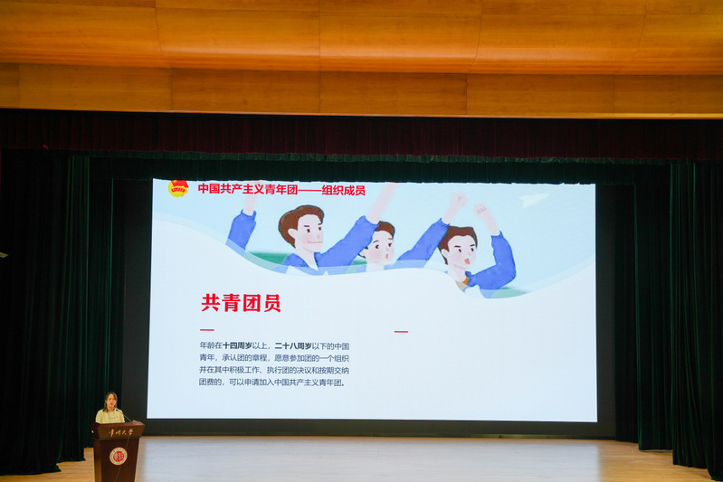 讲座上,宗佳瑛以中国共产主义青年团的历史背景为切入点,从中国共产主义青年团简介、象征和标志、入团基本要求、团员的权利与义务、发展团员的流程五个关键方面进行了细致的讲解,帮助同学们明晰入团有关事项。宗老师深入浅出地讲解了共青团在不同历史时期所发挥的重要作用,让学生们深刻感受到共青团的先进性和光荣使命。她表示,习总书记对青年寄予厚望,党和国家事业的希望寄托在青年身上,希望2024级的同学们在校期间,明确人生目标,珍惜团组织提供的良好平台,锻炼自己,成长自己,奋力书写为实现中国式现代化挺膺担当的青春篇章。