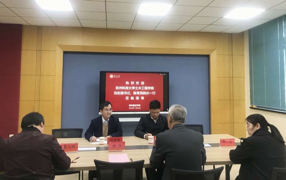 报告会前,苏州科技大学土木工程学院党委书记刘志强、院长陈育民与学院领导班子开展了交流座谈。