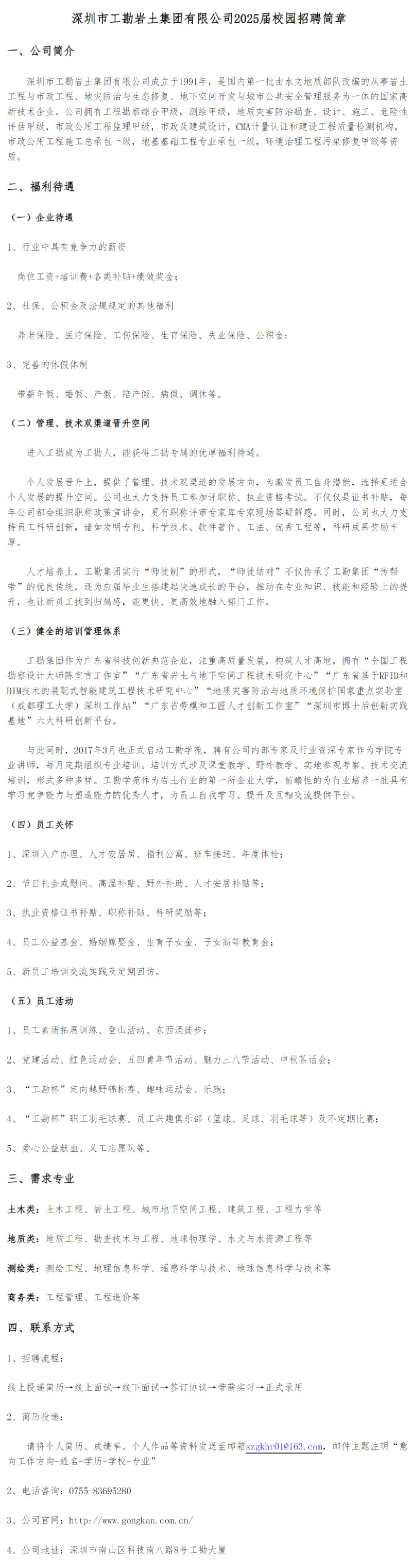 招聘[2024197]深圳市工勘岩土集团2025届校招