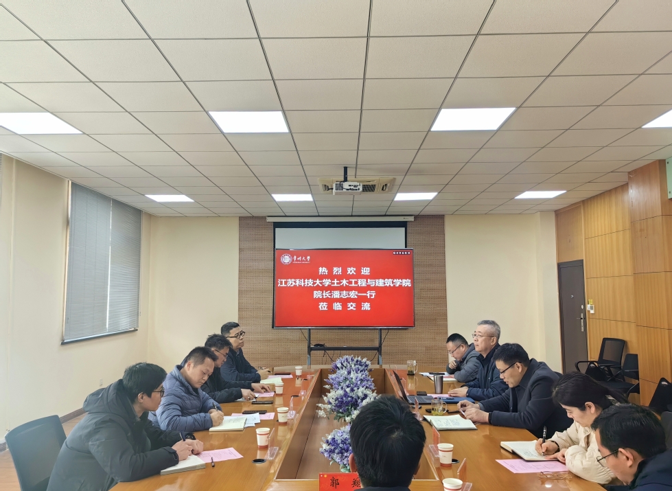 潘志宏介绍了江苏科技大学土木工程与建筑学院的基本情况。随后,双方围绕土木工程专业升级改造、土木工程专业博士点申报、江苏省大学生土木工程结构创新竞赛会议组织安排、学生管理等方面展开讨论交流。
