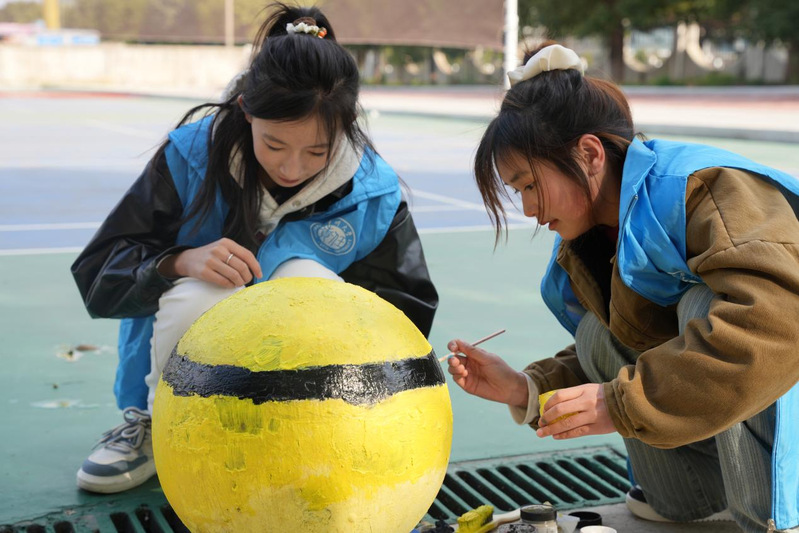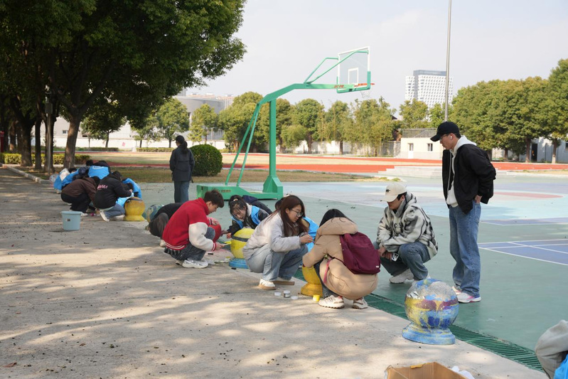 活动一经发起,便吸引了众多热心的学生志愿者踊跃参与。下午两点三十分,他们带着满腔的热情和无限的创意,齐聚在特殊教育学院的校园内。在活动现场,学校老师介绍了“色彩传递关爱”这一主题,简要说明了绘画区域分配、材料使用方法以及安全注意事项。随后,志愿者分成若干小组,每组负责一个石墩的绘画工作。志愿者们分别调色、勾勒、上色,经过三个多小时的通力协作,普通的石墩被创作成了卡通形象、花卉图案和励志标语等多样化的艺术作品。这些绘画作品分布在校园的主要通道两侧,为校园环境增添了新的视觉元素。