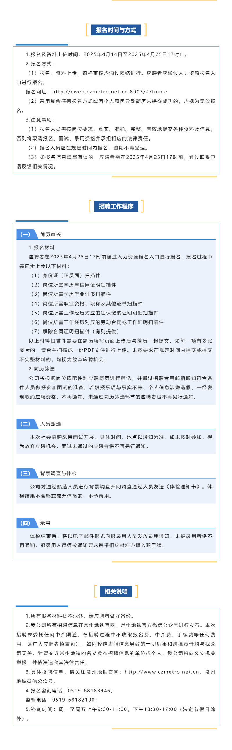 招聘[2024217]常州地铁安防科技有限公司2025年招聘