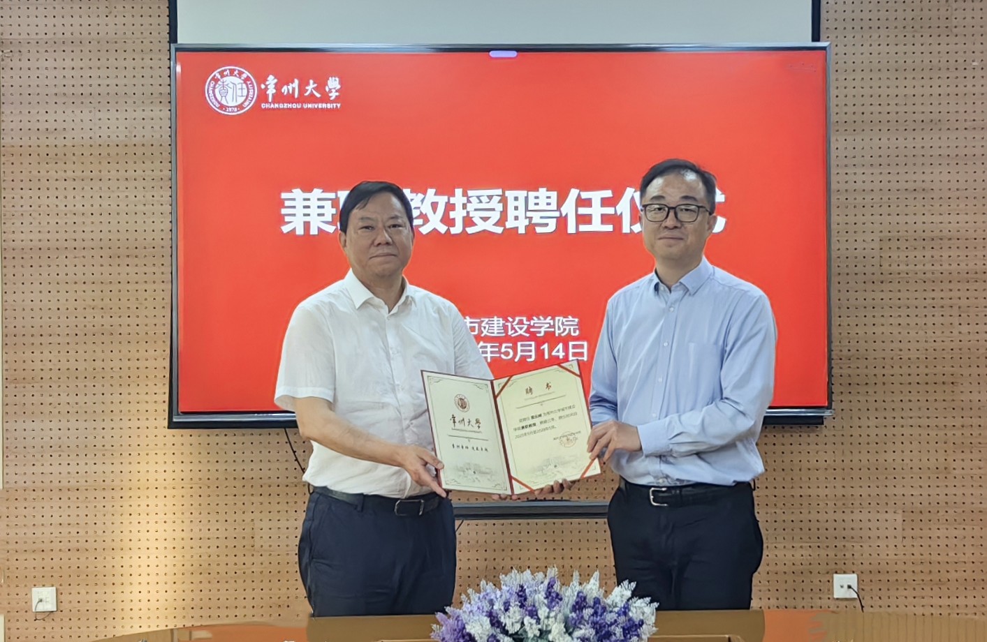 常州市建筑行业协会会长、常嘉建设集团有限公司董事长殷云峰一行来校交流