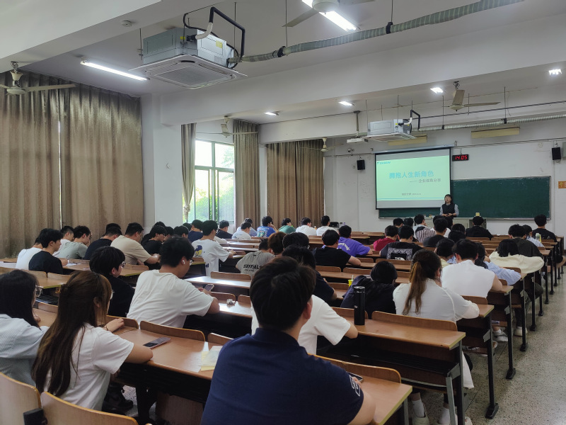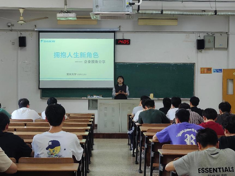 为进一步强化学生职业能力,提升就业核心竞争力,5月14日,色情卡通 开展主题为“拥抱人生新角色”的校园宣讲会,本次讲座邀请大金(中国)投资有限公司南京分公司人事课课长任和清主讲,辅导员张争到场主持,建环22级全体学生到场参会。
