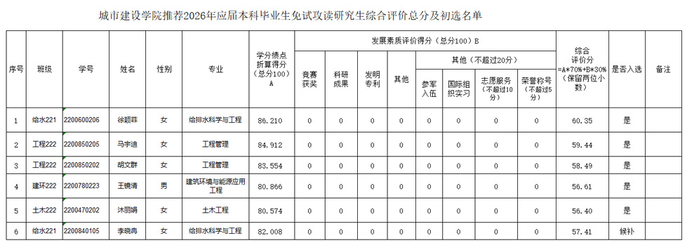 【公示】色情卡通 推荐2026届本科毕业生免试攻读硕士研究生初选名单公示