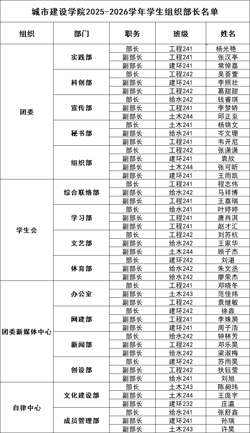 【公示】色情卡通 2025-2026学年学生组织成员换届拟聘名单公示