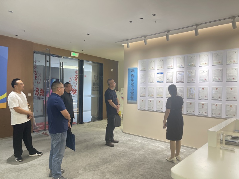 在天瑞公司总经理韩青林的陪同讲解下,学院一行参观了公司的文化空间和样品展示,直观了解企业的产业布局、涂料产品特色与生产流程。韩总详细介绍了公司发展历程、业务分布和产品布局,让老师们对材料行业发展趋势和股份企业运营模式有了更全面的认识。